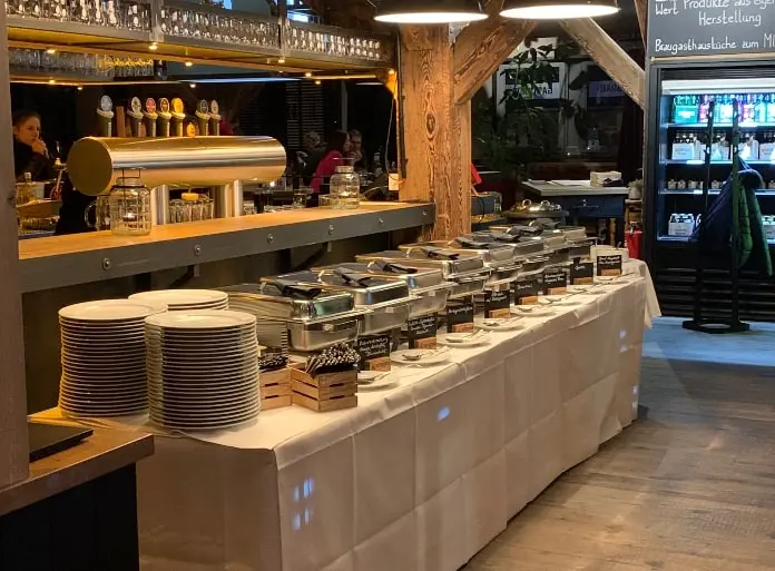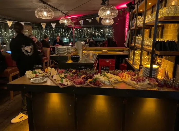 Unser Abend begann um 18 Uhr im Braugasthaus „Dolden Mädel“ in Stralsund. Nachdem wir alle zum Team-Foto zusammenstanden, folgte im Gastraum eine kurze Rede und Buffet-Eröffnung durch unsere Geschäftsführer Frank, Lars und Gerold. Der Abend war locker und lustig und da wir in den letzten Monaten personell stark gewachsen sind, eine hervorragende Gelegenheit, die neuen Kollegen besser kennenzulernen.