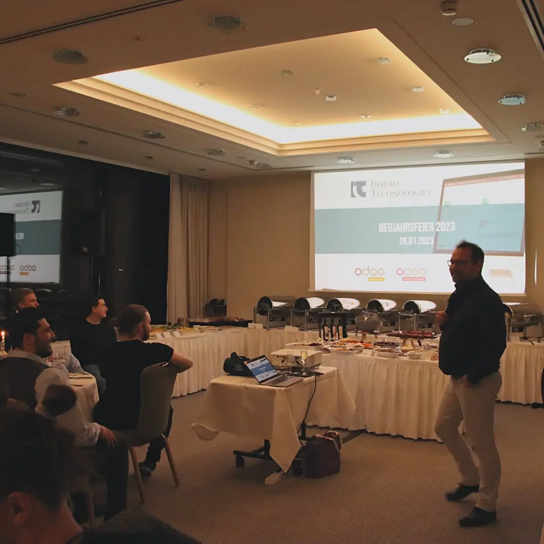 Nach dem Essen hielt unser Geschäftsführer Lars eine Rede und bedankte sich bei allem Mitarbeitenden.