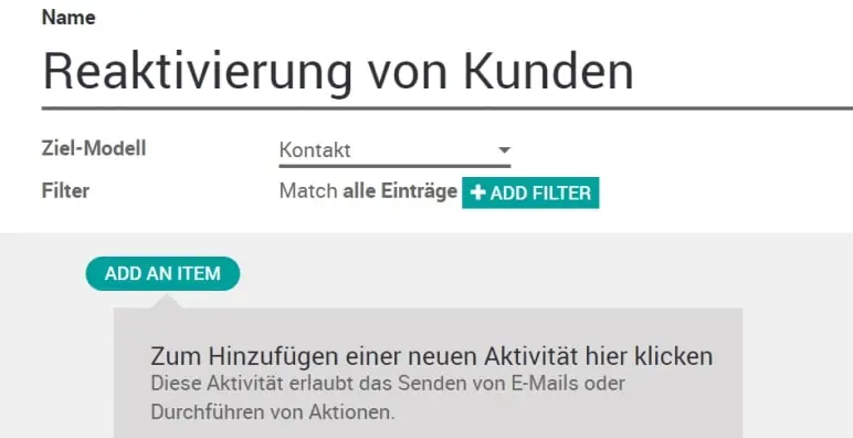 Auch der Aktivität vergeben Sie einen Namen, z. B. „1. Mail für Kundenreaktivierung“.