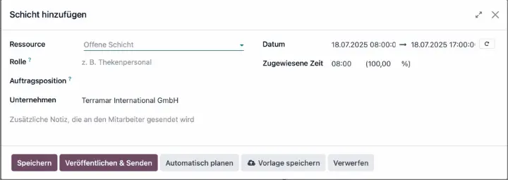 Um diese Herausforderungen zu lösen, wurde eine neue App Odoo Planung implementiert – ohne zusätzliche Software, vollständig integriert in die bestehende Infrastruktur.