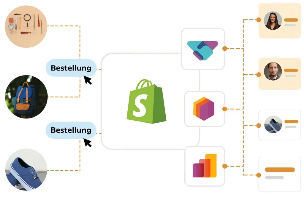 Ein typisches Integrationsszenario ist die Anbindung eines Webshops – etwa Shopify – an Odoo. Ziel: Alle Bestellungen, Kundendaten und Lagerbewegungen in einem zentralen System verwalten. So funktioniert’s: